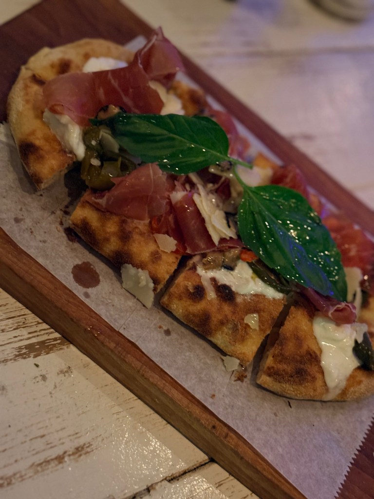 We ordered the Rita pizza, and let me just say: this might be one of the freshest, most flavorful pizzas I’ve ever had in my life. Truffle burrata, bosco mushrooms, sautéed bell peppers, prosciutto di Parma, shaved parmesan… it was luxurious, indulgent, and worth every bite.