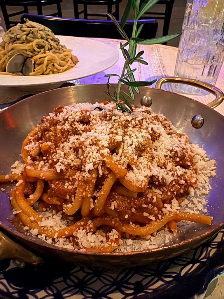 We also tried the clam linguine (not as amazing as last time but still solid), the pappardelle bolognese (which we switched to bucatini), and a side of perfectly cooked asparagus. Chef’s kisses were in full effect.