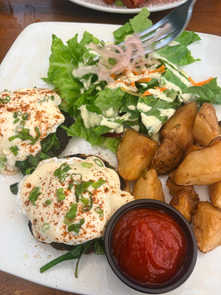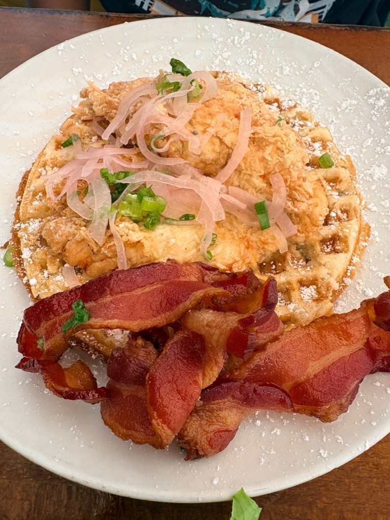 They’ve moved several blocks down Ocean Drive into a smaller location, and unfortunately, the quality went with the square footage. I ordered the crab cake benedict I once loved, only to receive lightly seasoned poached eggs perched on tiny crab cakes that were overcooked and underseasoned… with no English muffin. Where do they do that? My partner’s chicken and waffles were better – at least the bacon was cooked perfectly – but the chicken was not crispy. The audacity.