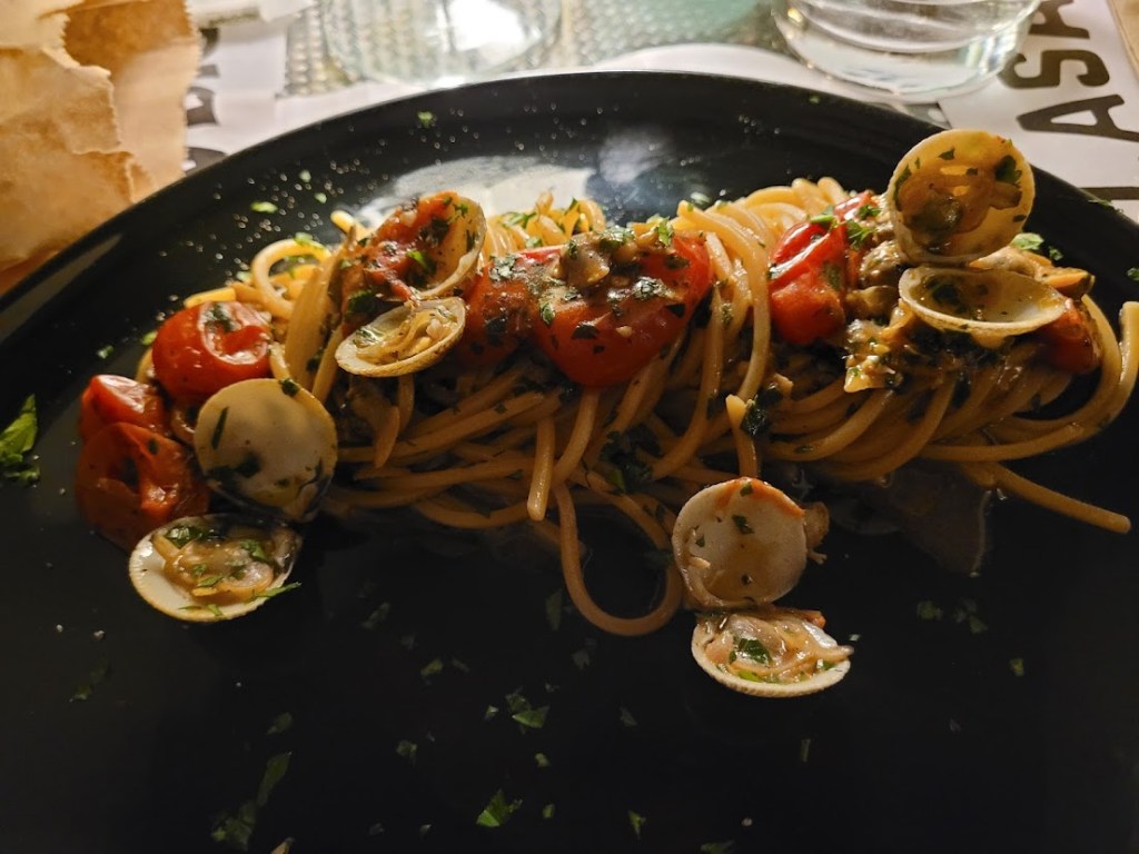 We also tried the clam linguine (not as amazing as last time but still solid), the pappardelle bolognese (which we switched to bucatini), and a side of perfectly cooked asparagus. Chef’s kisses were in full effect.