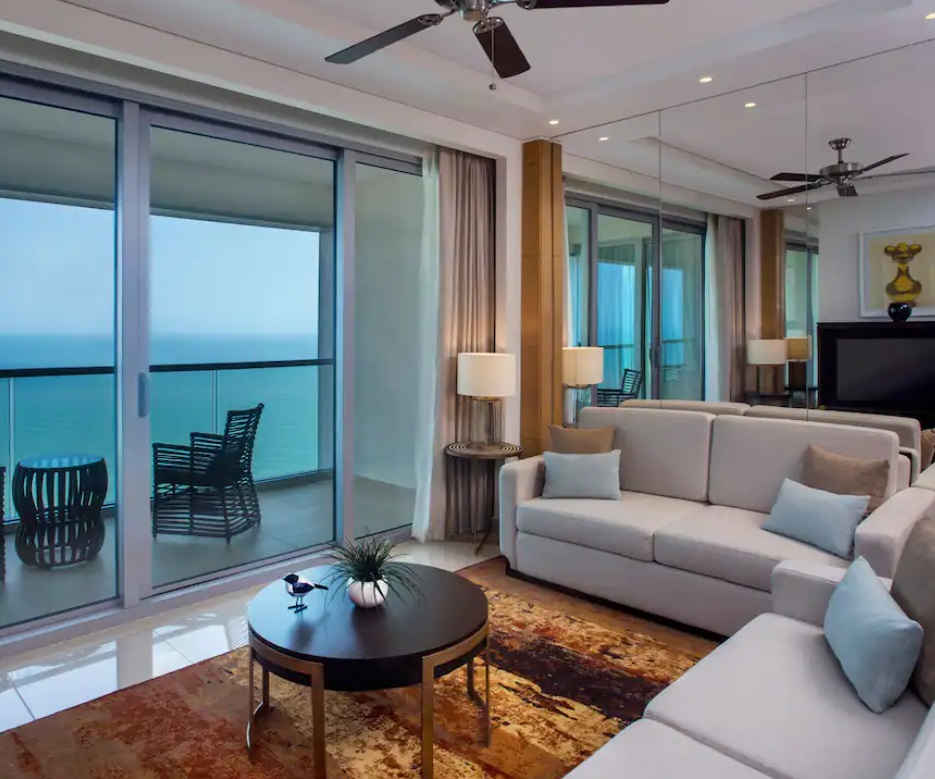 As the multiple bedroom options were part of the residences, we enjoyed a separate living and dining area, a full kitchen, and a private balcony boasting high-rise views of the city. Note, if you have an issue with heights, the residences are all on the top 17 floors of the 40-story building. For a frame of reference, the lobby is on the 12th floor, so it only goes up from there!
