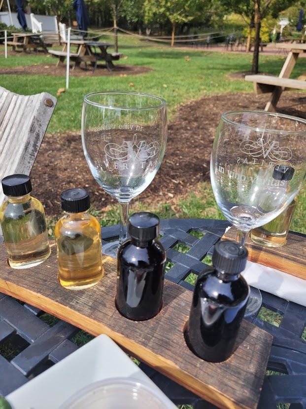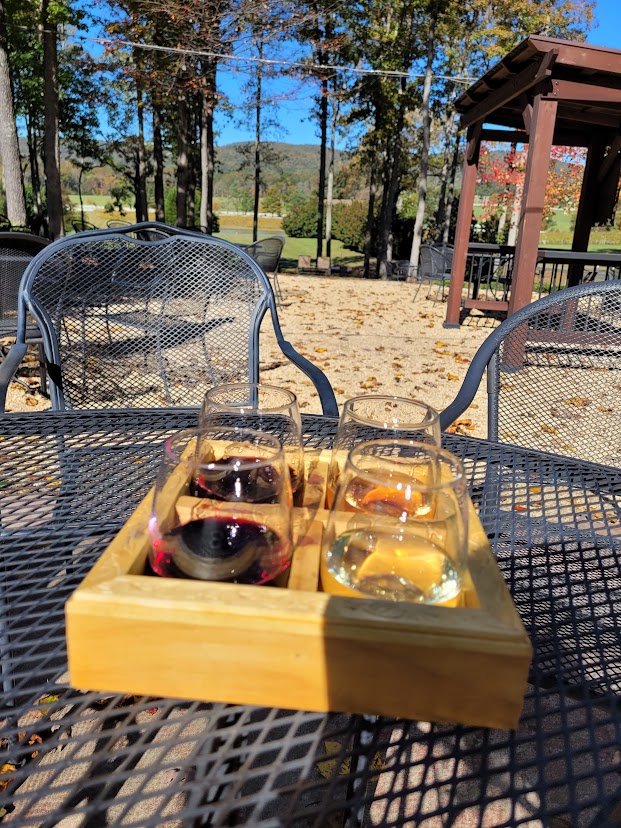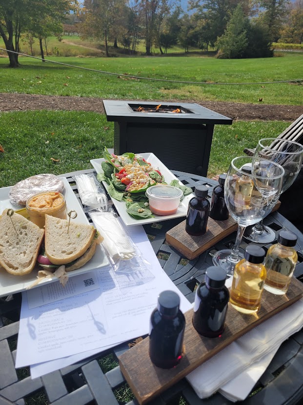 It’s also important to note that we visited this winery on a particularly crisp fall day and they did not have fire pits or a working fireplace at the time. Sitting in the sun made the cooler fall temps more bearable, but we also had to compete with some pretty aggressive bees for the sun. By the time we return, they plan to have their heated glass-enclosed area in place and a propane refill for their outdoor fireplace.