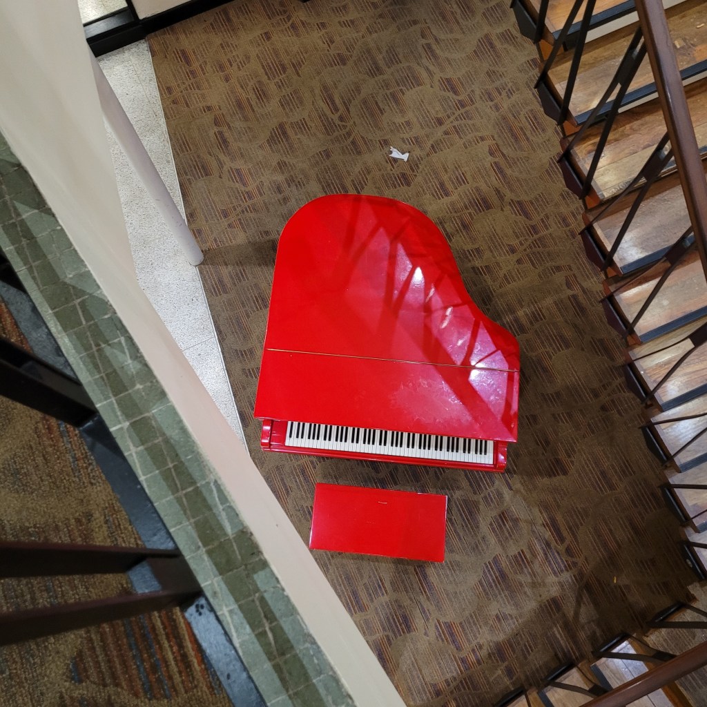 I couldn’t help but snap a shot of this beautiful red piano under the staircase leading to the hotel’s restaurant.As a side note, be sure to stop by Yardie Jerk & Barbecue while in town. This brother taught himself how to cook, and from the taste of his food, he is truly anointed!