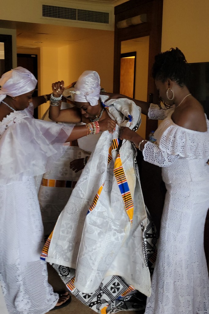 I was blessed to be invited on this trip to serve as a communications liaison for Queen Mother Juanita, along with two other Ghanaian beauties who were assigned the roles of linguist and assistant. Upon arrival, we immediately deemed ourselves “The Queen’s Court.” It was our responsibility to make sure that she showed up on every occasion representing well, and we were grateful to do so.