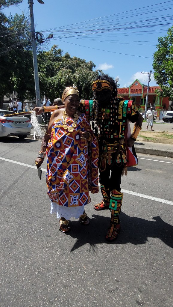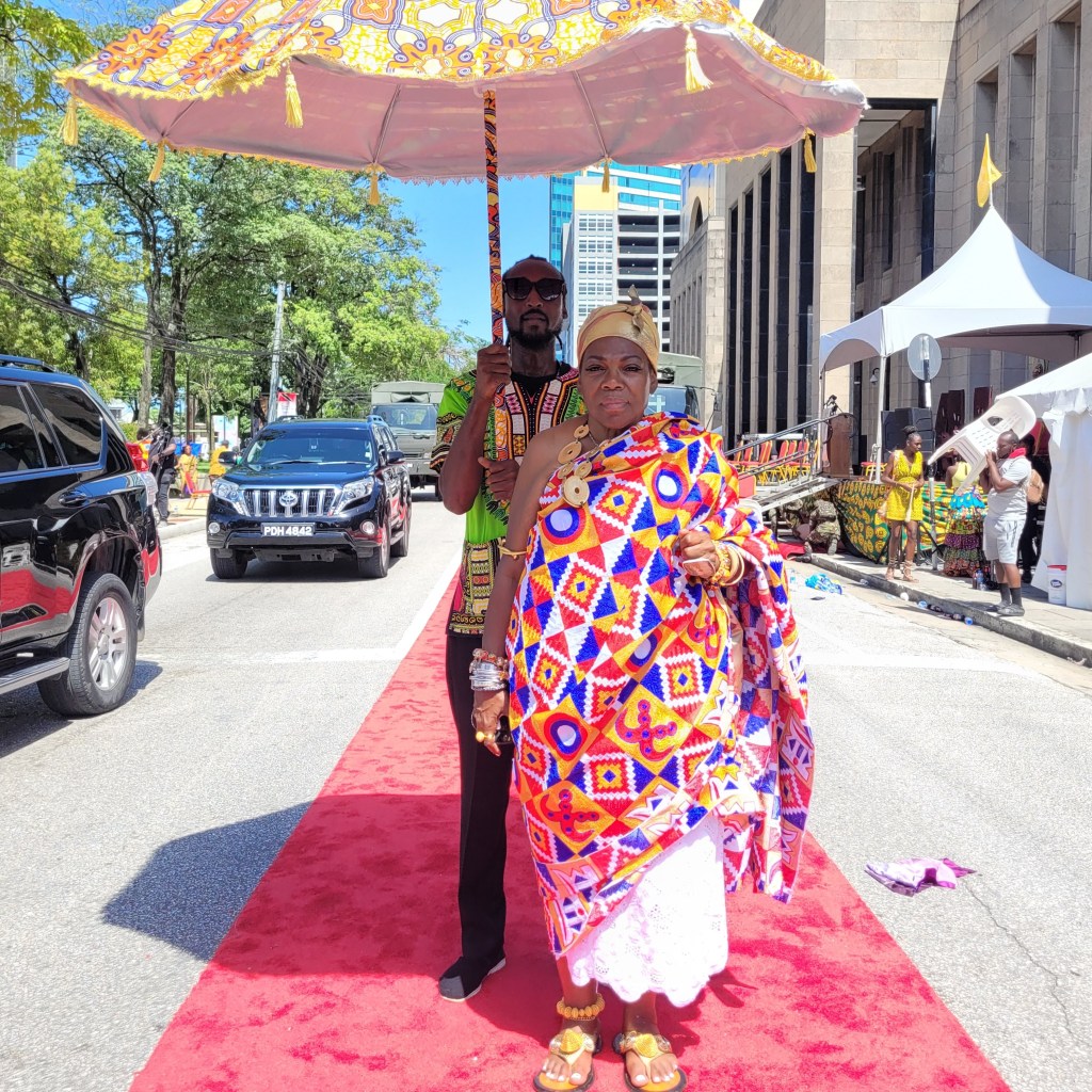 Each year, a new dignitary from a country within the African Diaspora visits Trinidad for the purpose of experiencing how the continent is recognized and celebrated in this country. This trip for the Ashanti King Otumfuo Nana Osei Tutu II, known as the Asentehene, was no different. Arriving a few days before Emancipation Day, he received a grand welcome from the Ghanaian delegation in town for the festival at the hotel. From what I understand, on the spectrum of welcoming presentations, it was pretty low-key, but to me, it felt like I was in a real-life version of Coming to America. Though this movie would be called Coming to Trinidad (smile).