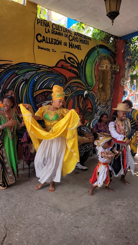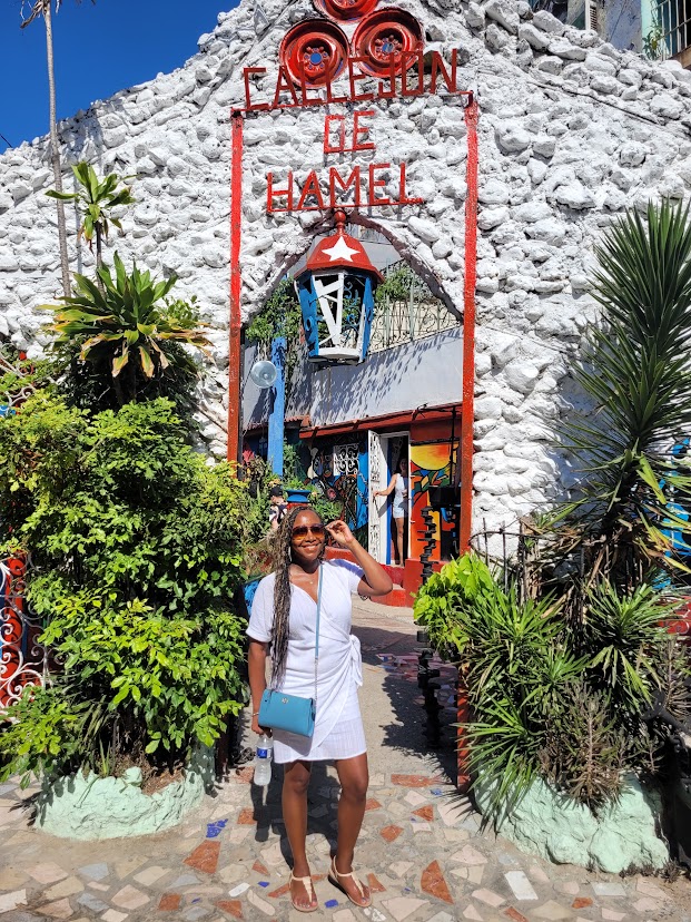 One of my favorite parts of the day was exploring the street art of Havana’s Callejon de Hamel, created by talented muralist and artist Salvador Gonzalez. He helped to transform what was formerly a crime-ridden slum into a charming two-block alley-way filled with stunning Afro-Cuban art that pays homage to the Yoruba Santeria culture and religion. On Sundays, the day we visited, you can enjoy charming, energetic dancers who accompany the sounds of their native rumba music. We wore white in honor of the Santeria culture and religion that is practiced in Cuba.