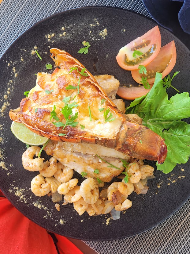 I discovered Johnnos, a beloved beachfront restaurant among the locals accidentally. We had a reservation to visit one of Anguilla’s beautiful off-shore islands, Sandy Island (similar to Scilly Cay island we visited last time), and somehow they forgot to tell us they had a private party for the day. Fortunately, Johnnos, which is located right at the dock for the ferries to the island welcomed us with open arms. (Pro tip: When visiting a destination, go to the spots the locals enjoy. In my experience, you can’t go wrong with that. When in Rome…)