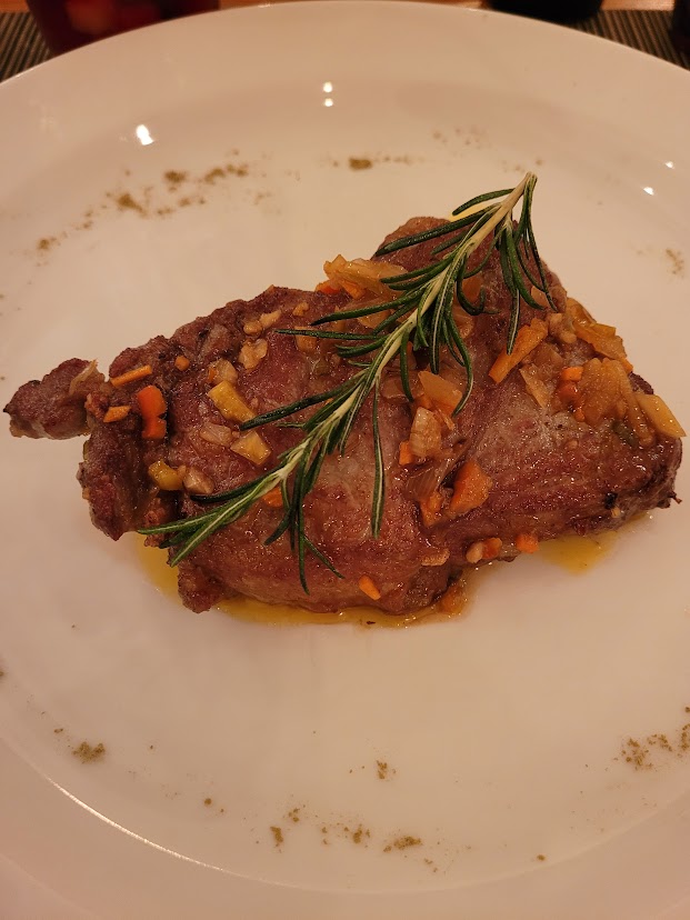 Then came the main event: a juicy, 16 oz prime New York strip steak, grilled just right, served with a delightful chimichurri sauce that had the nerve to be both bold and balanced. Every bite was seasoned just right, tender, and full of “this is what I came for” energy. Because after all, we were at a steakhouse.