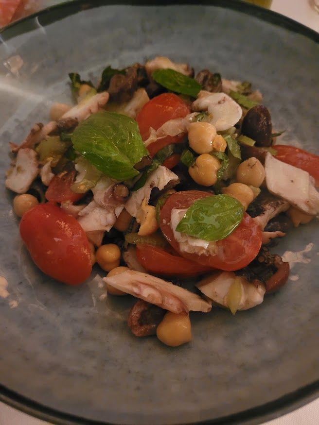 For an appetizer, we started with the Insalata di polpo e ceci (octopus salad), which included chickpeas, tomatoes, cherry peppers, and basil leaves. Delicioso! It was so fresh you would think they plucked that octopus right out of the sea.